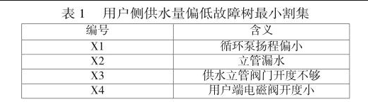 从故障树的底事äšg开始,通过输入和输å‡ÞZº‹ä»¶çš„逻辑门关¾p»ï¼Œä»£æ›¿ä¸­é—´äº‹äšgåªå¾—åˆîC¸€¿U逻辑门的故障树,òq¶è¿ç”¨å¸ƒž®”简化法对其½Ž€åŒ–,最åŽå¾—到全部最ž®å‰²é›†ï¼Œ˜q›è€ŒèŽ·å¾—æ•…éšœæ ‘çš„å‚æ•°é›†ã€‚在二次供水¾pÈ»Ÿ˜q行˜q‡ç¨‹ä¸­ï¼Œ¾l常会出çŽîC¾›æ°´æ°´åŽ‹è¿‡ä½Žçš„çŽ°è±¡åQŒæ­¤¾cÀL•…éšœä¸€èˆ¬æ˜¯å› äØ“ä¾›æ°´½Ž¡ç½‘而导致的åQŒé€ æˆæ•…障原因较å•一åQŒå°†å…¶åˆ†ä¸ºæ•´ä½“水压较低和局部水压较低两斚w¢æ•…障原因åQŒæ•…障原因的æœçƒ¦ä¸»è¦ä¾æ®è®¾è®¡äººå‘˜åŠçŽ°åœºå·¥½E‹å¸ˆã€‚通过上é¢å¯Òް´åŽ‹è¿‡ä½Žçš„æ•…éšœæ ‘å®šæ€§åˆ†æžï¼Œå¯ä»¥å¾—到供水水压å低的最ž®å‰²é›†ã€?