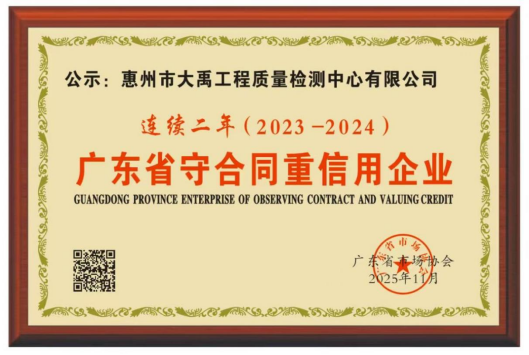 作為惠州水務集團旗下專業檢測機構,大禹檢測公司已構建起完善的信用管理體系:連續多年獲惠州市惠城區市場監督管理局“守合同重信用企業”認證,保持100%合同履約率。未來,公司將深化“信用+服務”融合發展戰略,以CMA認證為技術支撐,為粵港澳大灣區水務安全提供更可靠的檢測保障。