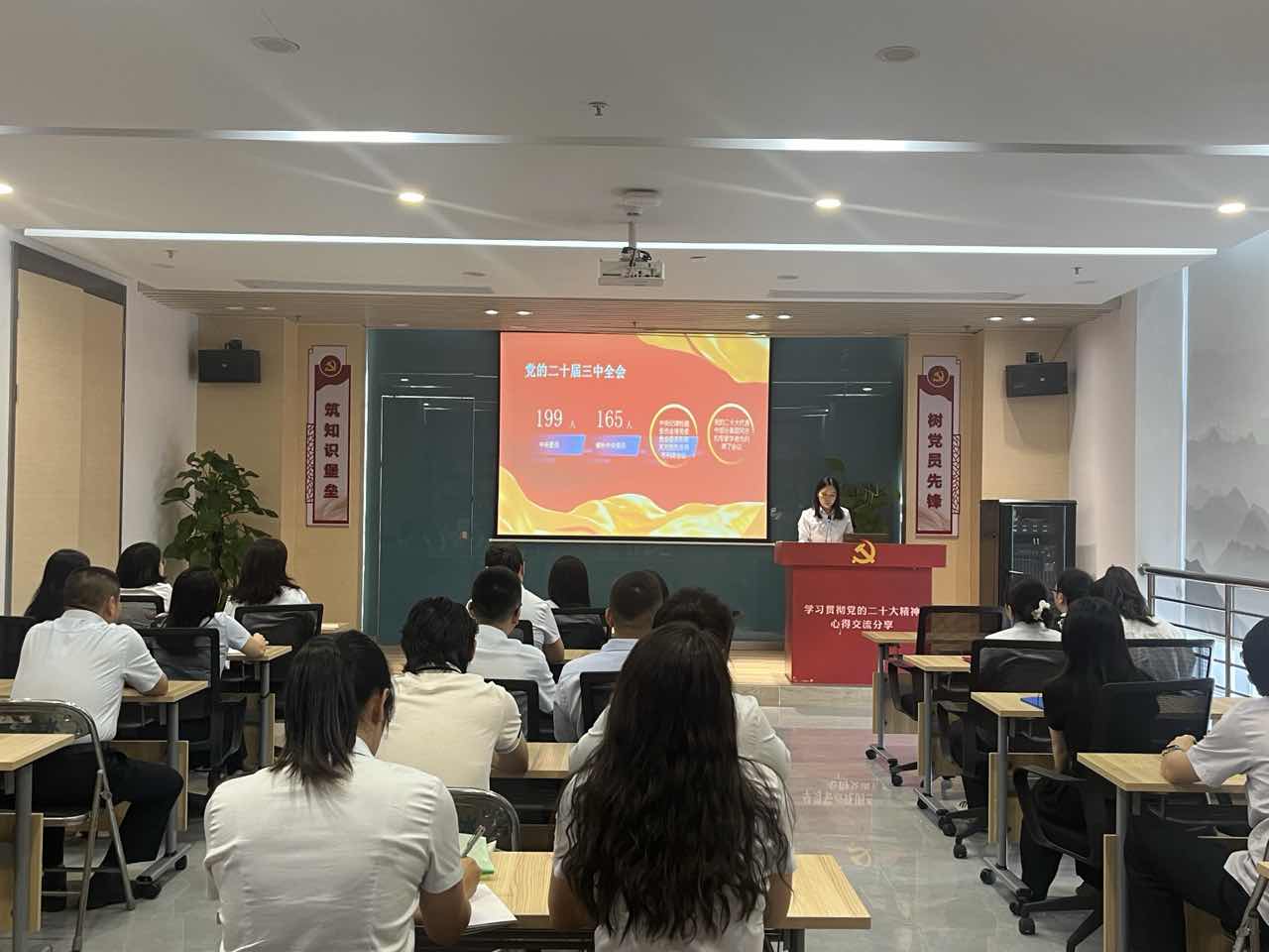 黃海燕以《進一步全面深化改革 推進中國式現代化——深入學習貫徹黨的二十屆三中全會精神》為題,深入剖析全會提出的一系列新思想、新觀點和新要求,組織公司支部委員、黨務工作者結合工作經驗“學思想、悟精神、談體會”,共同凝聚奮進力量。