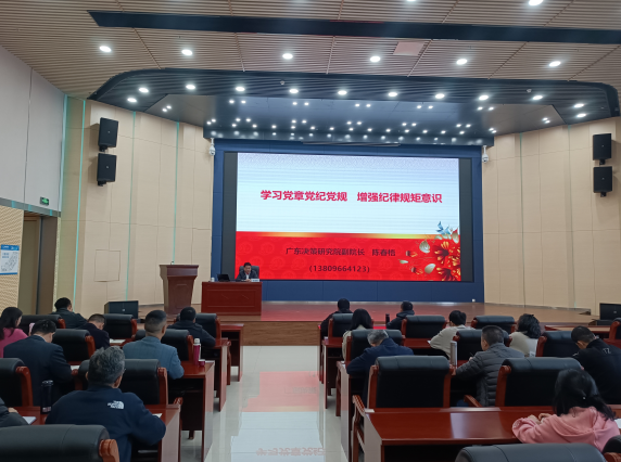 廣東決策研究院副院長陳春梧,為集團系統基層一線普通黨員代表210余人講授《學習黨章黨規黨紀,增強紀律規矩意識》。