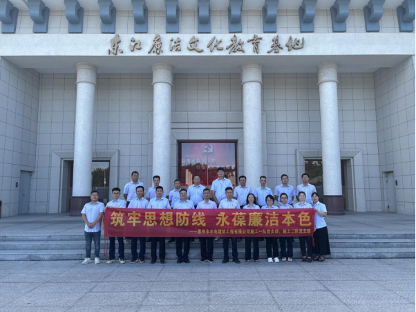 為扎實推進黨風廉政建設,增強黨員干部廉潔自律意識,6月11日,水電公司施工一隊、施工二隊黨支部組織黨員赴博羅東江廉潔文化教育基地開展“筑牢思想防線 永葆廉潔本色”主題黨日活動,通過沉浸式廉潔教育,進一步筑牢黨員拒腐防變思想防線。