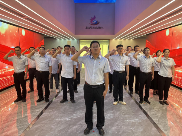 在最后宣誓環節,全體黨員面對鮮紅的黨旗,高舉右拳,莊嚴宣誓:“我志愿加入中國共產黨,擁護黨的綱領,遵守黨的章程……”鏗鏘有力的誓言在展廳內回蕩,表達了黨員們堅守廉潔底線、永葆政治本色的堅定決心。